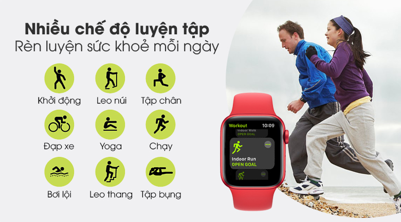 Chiếc Apple Watch S6 này được tích hợp nhiều bài luyện tập thể thao như nhảy, đạp xe, bơi lội, leo núi, yoga, ... giúp nâng cao hiệu quả tập luyện và cải thiện sức khỏe mỗi ngày.
