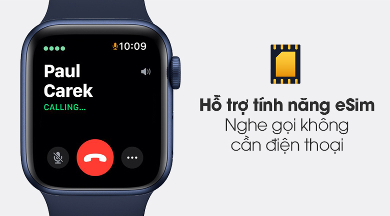 Với tính năng eSim hiện đại, Apple Watch giúp bạn có thể nghe, gọi độc lập mà không cần phải liên kết với điện thoại. Bạn dễ dàng nghe gọi hay xem thông báo khi đang chạy xe, tập thể thao mà không cần lấy điện thoại ra.
