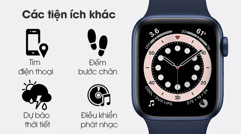 Bao gồm các tính năng: La bàn, đếm bước chân, tìm điện thoại, báo thức, định vị, dự báo thời tiết, tính lượng calories tiêu thụ,... Và còn nhiều tiện ích khác hỗ trợ sức khoẻ người dùng.