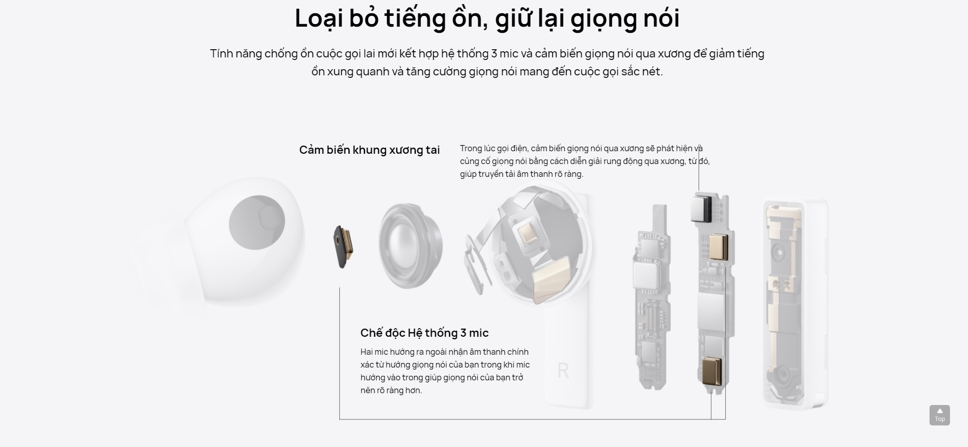 Giảm nhiễu cuộc gọi với hệ thống ba mic và cảm biến xương tai