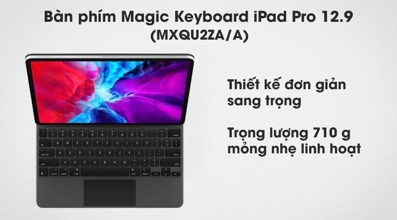 Bàn phím Magic Keyboard iPad Pro 12.9 (MXQU2ZA/A) đem lại những tiện ích chưa từng có cho chiếc iPad Pro của bạn, vừa là công cụ hỗ trợ đắc lực cho công việc, vừa bảo vệ an toàn, chống sốc hiệu quả cho iPad.