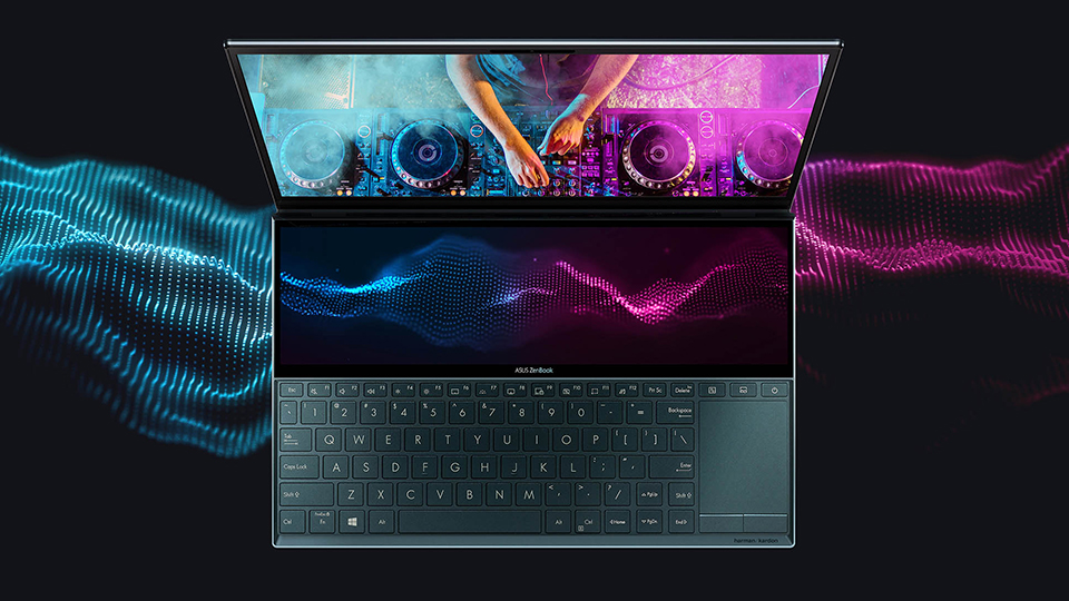 Âm thanh trên Asus ZenBook Duo được phát triển bởi đội ngũ Asus Golden Ear và các chuyên gia của Harman Kardon, mang đến chất lượng âm thanh cao cấp. Sự kết hợp tùy chỉnh giữa phần cứng – trong đó có công nghệ bộ khuếch đại thông minh cho âm lượng lớn hơn mà không bị méo tiếng – và phần mềm được thiết kế khéo léo để bạn có được trải nghiệm âm thanh hàng đầu.