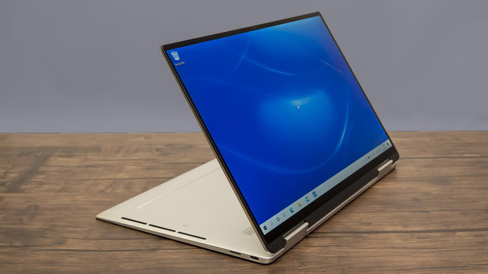 Dell XPS 13 9310 2-in-1 sử dụng bản lề mô-men xoắn cho khả năng xoay 360 độ đầy linh hoạt, kết hợp với màn hình cảm ứng đa điểm, bạn sẽ có thể sử dụng tới 4 vai trò khác nhau chỉ trong một thiết bị duy nhất. Bên cạnh là một chiếc laptop thông thường, bạn có thể gập 360 độ để biến XPS 13 2-in-1 thành máy tính bảng, gập dạng lều hoặc gập ngược máy cho chế độ trình chiếu.